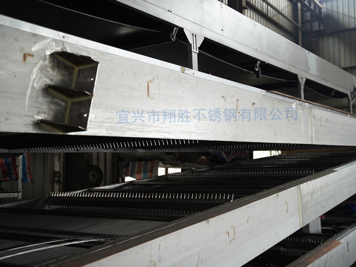 雨水格栅设备结构参照了回转式格栅除污机的优点,采用与众不同的工作原理,即耙齿链在栅前后作回转运动,当耙齿运转到栅条的迎水面时,即插入栅条缝隙中由下往上作清捞动作。耙齿链采用封闭式,不让杂物侵入,使设备运转平稳。在设备安装时采用整机吊装,只需在集水井两侧的地坪上预埋两块钢板,土建简单,安装维修方便。
